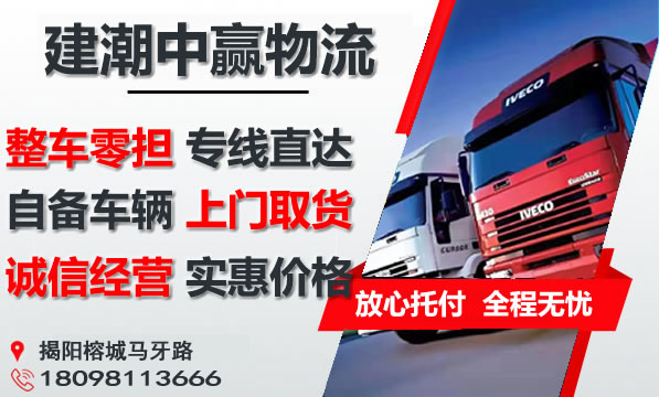 揭阳到遂宁物流专线是建潮中赢物流主营重点物流线路之一,提供4.2-17.5米整车包车运输,零担专线,可上门取货,量大免费提送货;揭阳到遂宁货运专线价格实惠,欢迎来电咨询。